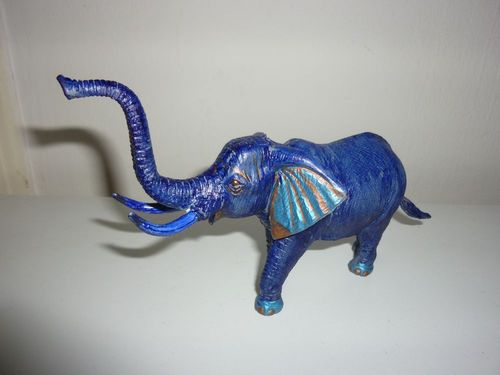 1416 1 Figur klein 1 blau bunt, Rüssel: oben, Stoßzähne: ja