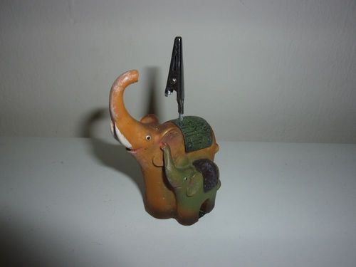 1594 1 Figur mittel 1 Fotohalter braun schwarz Wackelkopf, Rüssel: unten, Stoßzähne: ja