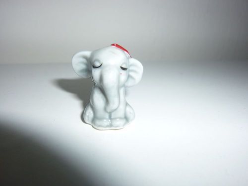 1438 1 Figur klein 1 grau rote Schleife auf Kopf, Rüssel: unten, Stoßzähne: nein