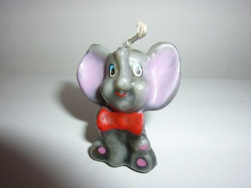 1439 1 Figur klein 1 Kerze grau rote Schleife Hals, Rüssel: oben, Stoßzähne: nein
