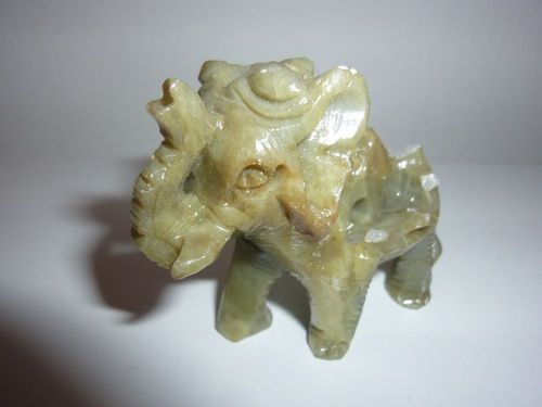 1422 1 Figur klein 1 grünlich Rüssel gebogen, Rüssel: oben, Stoßzähne: ja