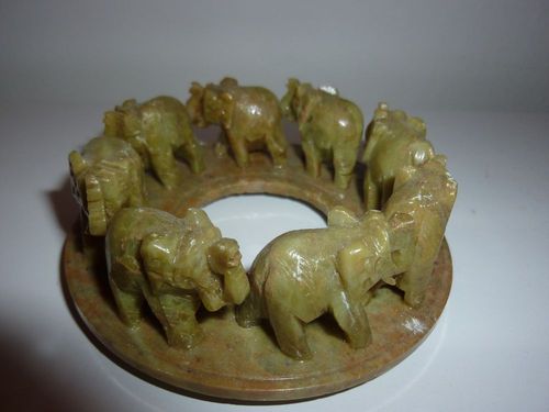 1459 1 Figur mittel 1 grün mit Kordel um Hals sitzt, Rüssel: unten, Stoßzähne: ja