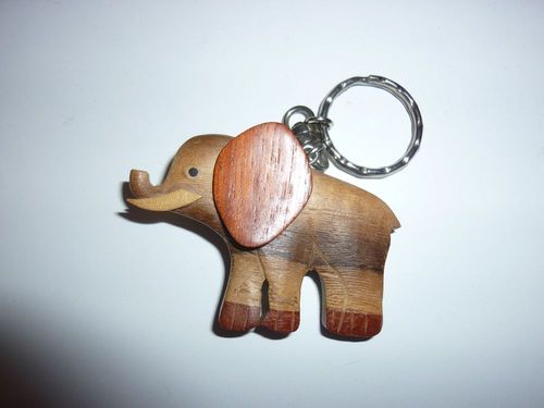 1448 1 Figur mittel 1 Schlüsselanhänger braun Linien, Rüssel: oben, Stoßzähne: ja