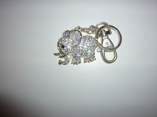 1447 1 Figur mittel 1 Schlüsselanhänger Straßsteine, Rüssel: oben, Stoßzähne: ja