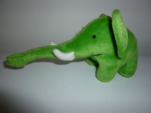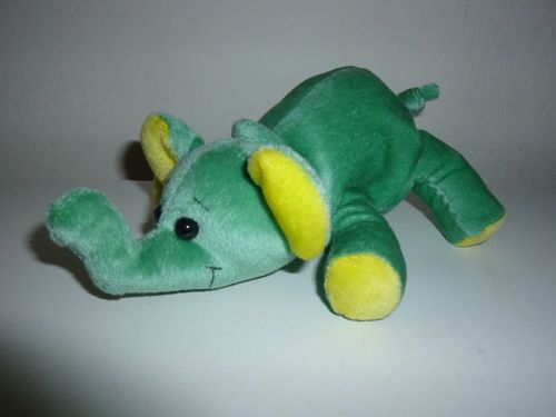 1458 1 Figur mittel 1 grün liegt mit gelben Ohren Pfoten, Rüssel: oben, Stoßzähne: nein