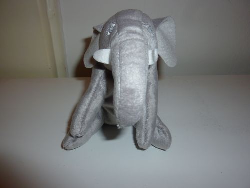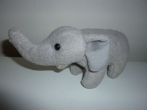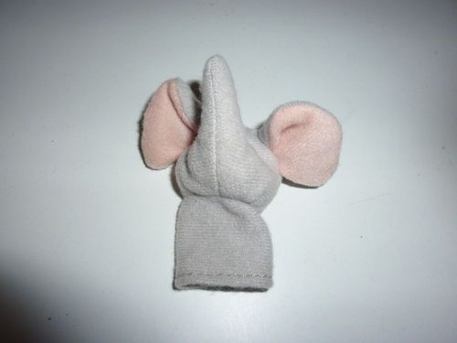 1469 1 Figur mittel 1 Fingerpuppe hellgrau mit rosa Ohren, Rüssel: oben, Stoßzähne: nein