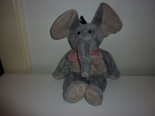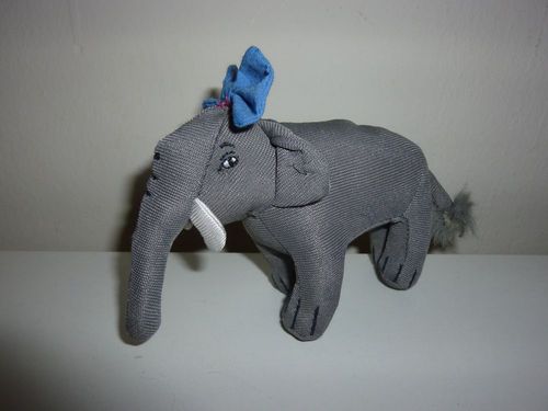 1559 1 Figur mittel 1 grau mit rot kariertem Halstuch, Rüssel: unten, Stoßzähne: nein