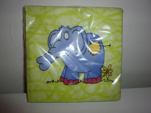 1568 1 sonstiges mittel Servietten lauter bunte Elefanten, Rüssel: oben, Stoßzähne: nein
