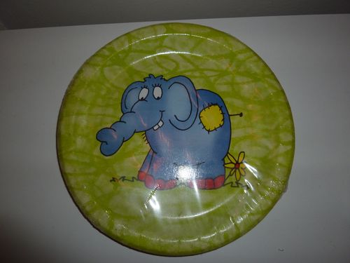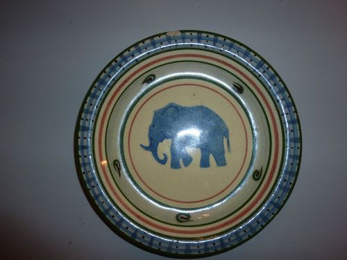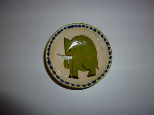 1474 8 Geschirr mittel Teller grün blauer Elefant, Rüssel: unten, Stoßzähne: nein