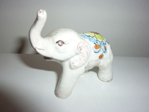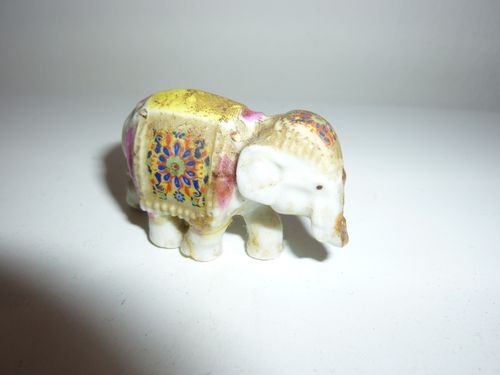 1481 1 Figur klein 1 weiß beige Decke antik, Rüssel: unten, Stoßzähne: ja