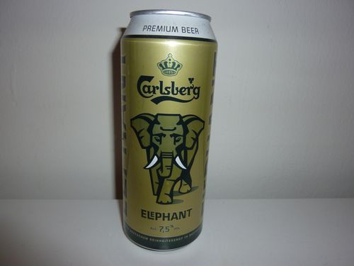 1491 1 sonstiges mittel Bierdose Carlsberg Elephant Beer, Rüssel: unten, Stoßzähne: ja