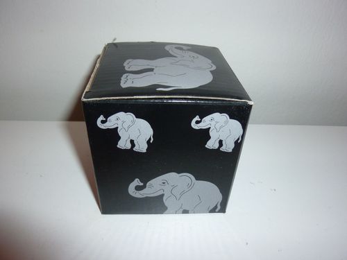 1555 1 Kästchen groß Kiste schwarz mit goldenem Band, Rüssel: oben, Stoßzähne: ja