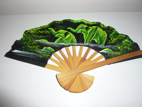 1493 1 sonstiges groß Fächer schwarz mit neongrünen Elefanten, Rüssel: oben, Stoßzähne: nein