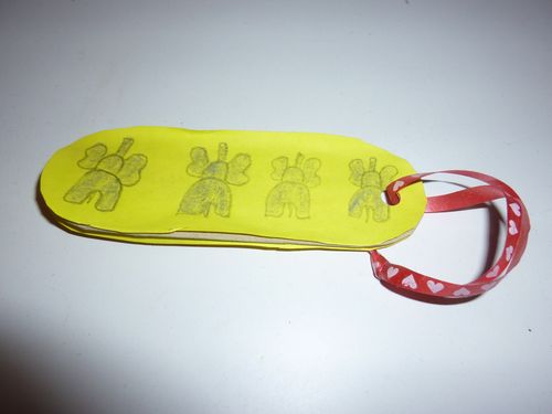 1496 1 sonstiges mittel Lesezeichen gelb mit vier Elefanten, Rüssel: oben, Stoßzähne: ja
