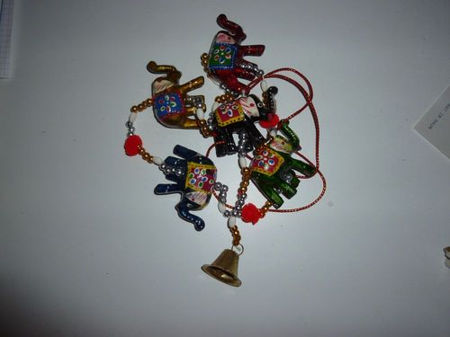 1501 5 Figur mittel 1 bunt hängen an Schnur unten Glocke aus Messing, Rüssel: oben, Stoßzähne: ja