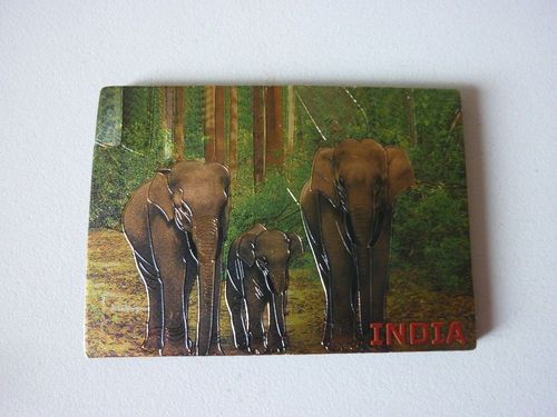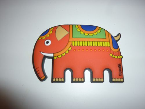 1579 1 Magnet groß 1 Magnet orange bunte Decke, Rüssel: unten, Stoßzähne: nein