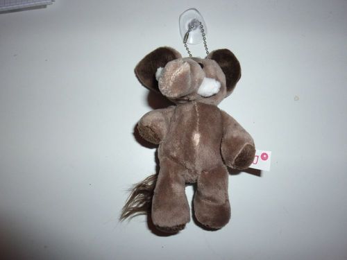 1414 1 Figur klein 1 Schlüßelanhänger braun, Rüssel: unten, Stoßzähne: nein