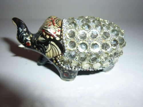 1492 1 Kästchen mittel Box schwarz mit silbernen Elefanten, Rüssel: oben, Stoßzähne: nein
