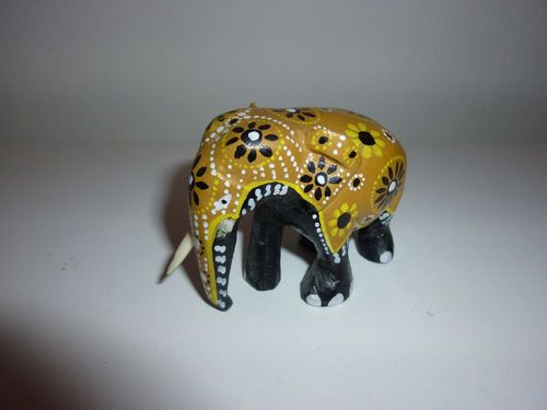 1503 1 Figur mittel 1 bunt gelb rot mit Aufsatz, Rüssel: oben, Stoßzähne: ja