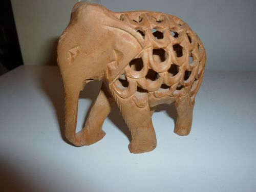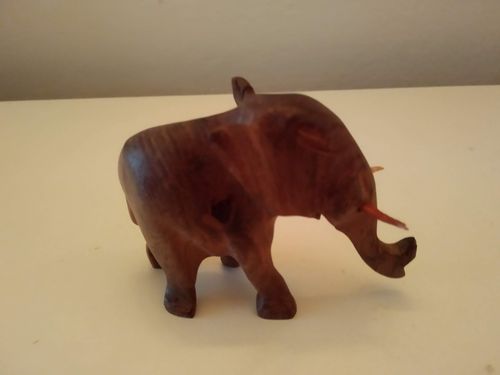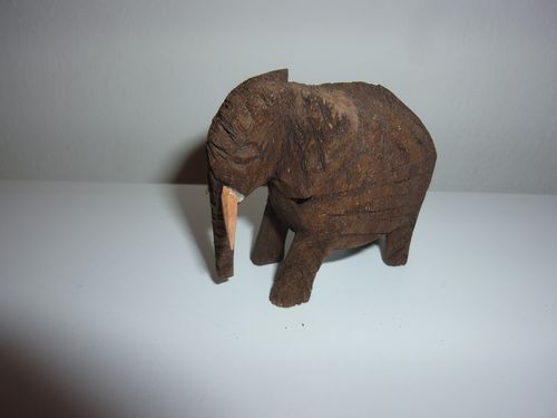 1619 1 Figur mittel 1 hellbraun einfach gemasert, Rüssel: unten, Stoßzähne: ja