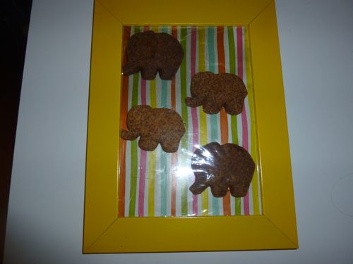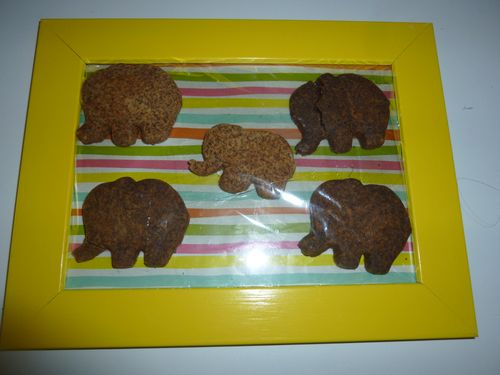 1575 5 sonstiges mittel 1 Plätzchen im gelben Bilderrahmen, Rüssel: oben, Stoßzähne: nein