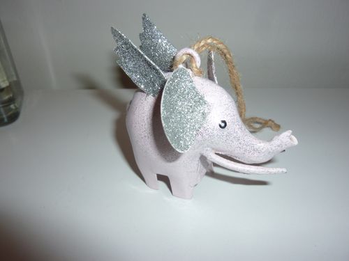 1588 1 Figur mittel 1 rosa glitzernd mit silbernen Flügeln, Rüssel: oben, Stoßzähne: ja