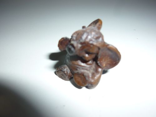 1592 1 Figur klein 1 sitzt auf Hintern braun, Rüssel: oben, Stoßzähne: nein