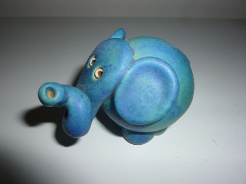 1482 1 Figur klein 1 wei hellblau gesprenkelt sitzt, Rüssel: oben, Stoßzähne: nein