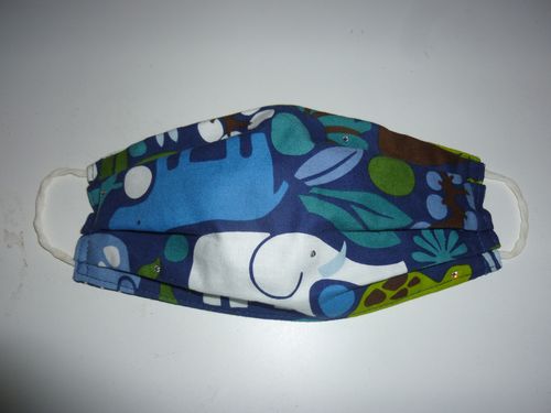 1596 1 Textilie mittel Maske grau weiß, Rüssel: oben und unten, Stoßzähne: nein