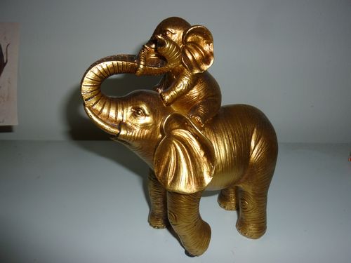 1597 2 Figur groß 1 gold mit Kind auf dem Rücken, Rüssel: oben, Stoßzähne: ja
