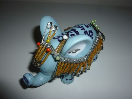 1486 1 Figur mittel 1 bunte Perlen, Rüssel: oben, Stoßzähne: ja