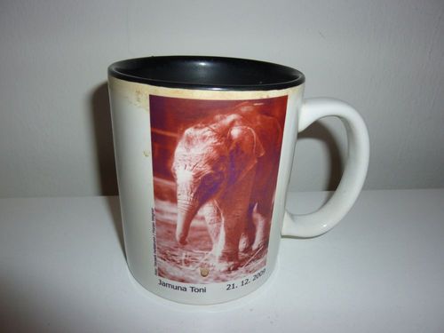 1602 1 Geschirr mittel Tasse mit Ele aus Tierpark Hellabrunn Jamuna Toni, Rüssel: unten, Stoßzähne: nein