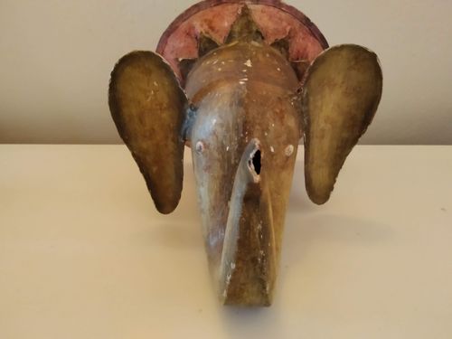 1607 1 Figur groß 1 Elefantenkopf Garderobe braun rosa, Rüssel: oben, Stoßzähne: ja