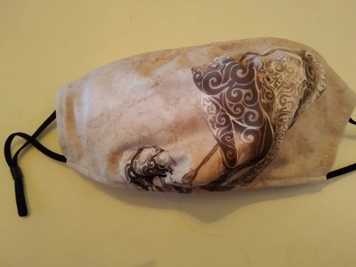 1608 1 Textilie mittel Maske beige braun Mutter und Kind, Rüssel: unten, Stoßzähne: nein