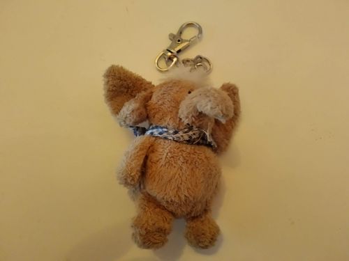 1617 1 Figur mittel 1 Schlüssel Anhänger hellbraun flauschig mit halstuch, Rüssel: oben, Stoßzähne: nein