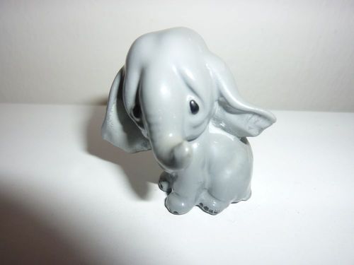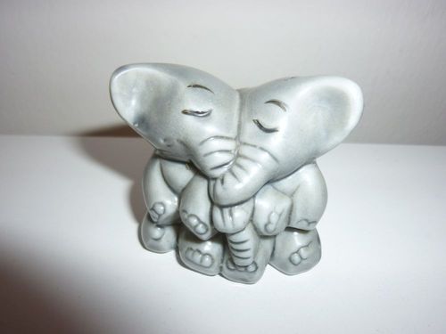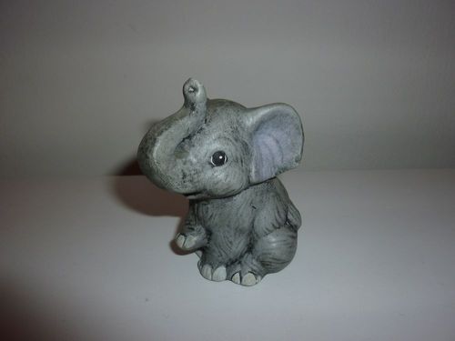 grau sitzt schaut traurig, Rüssel: oben, Stoßzähne: nein