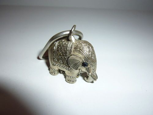Schlüsselanhänger silber zum aufklappen, Rüssel: unten, Stoßzähne: ja
