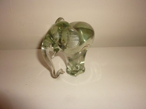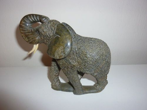 grün auf Sockel, Rüssel: oben, Stoßzähne: ja