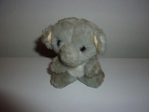 grau mit weissem Bauch sitzend, Rüssel: oben, Stoßzähne: nein