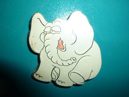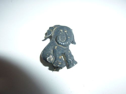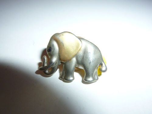Brosche grau gelb Engel, Rüssel: oben, Stoßzähne: nein