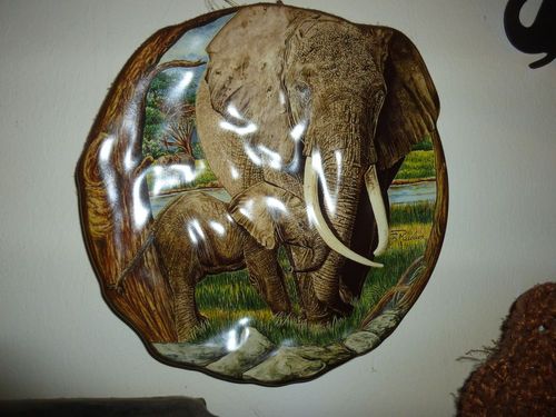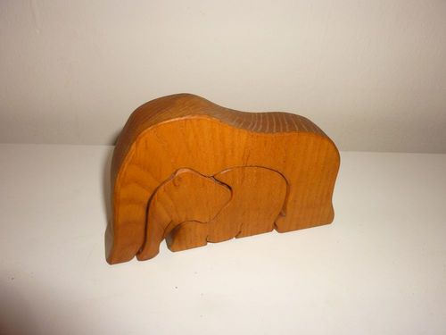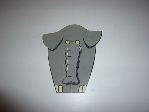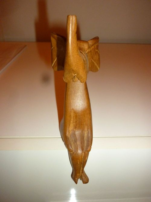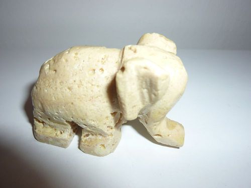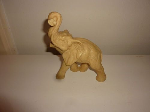 hellbraun am Rücken bemalt, Rüssel: oben, Stoßzähne: ja