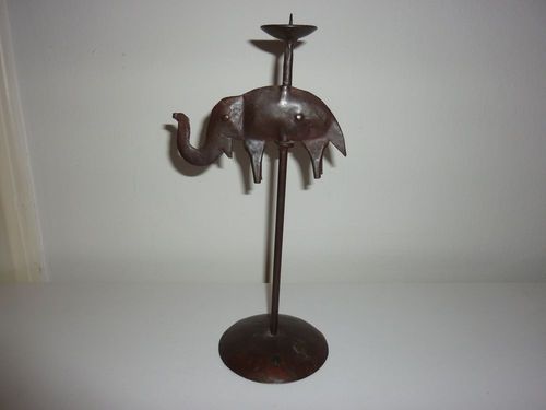 dunkelbraun Kerzenständer in der Mitte Elefant, Rüssel: oben, Stoßzähne: ja