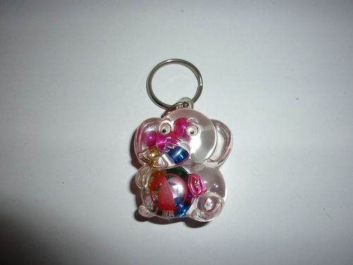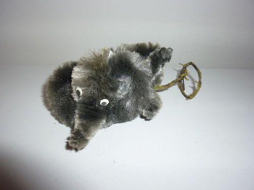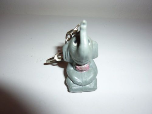 Schlüsselanhänger grau mit rosa Schleifchen, Rüssel: oben, Stoßzähne: nein