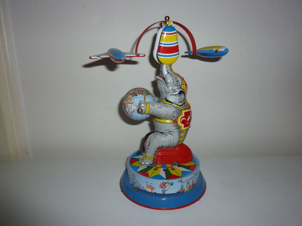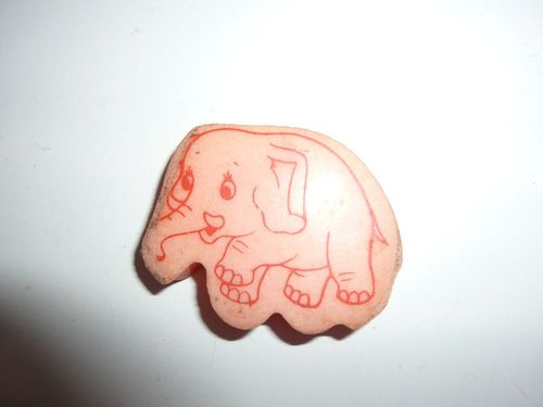 Kinderüberraschung grau was rotes im Rüssel, Rüssel: oben, Stoßzähne: ja