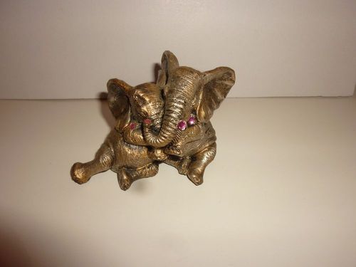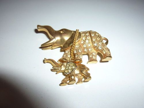 Brosche gold mit Strasssteinen, Rüssel: oben, Stoßzähne: ja