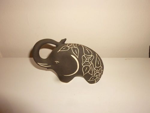 schwarz Blumentopf nur Kopf, Rüssel: oben, Stoßzähne: ja