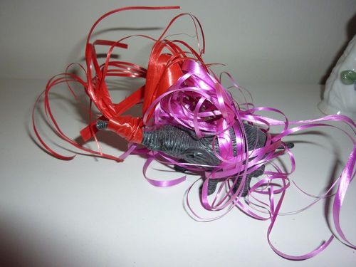 Ohrring rosa selbstgemacht, Rüssel: oben, Stoßzähne: nein