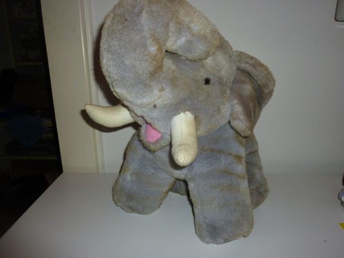 hellbraun fahrbar mit Lederohren, Rüssel: oben, Stoßzähne: nein