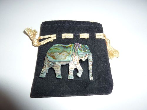 Brosche blau grün glänzend Paua, Rüssel: unten, Stoßzähne: nein