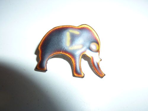 Brosche grau mit grün und lila, Rüssel: oben, Stoßzähne: nein